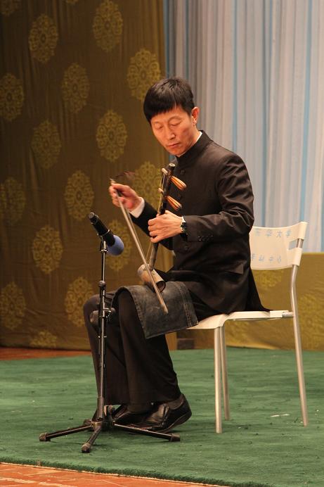 随后,国家一级演员徐孟珂为观众声情并茂地讲解了京剧的发源、行当、艺术手法等基本知识,每讲到一处,都会有专业的演员进行表演,生动形象的演示令观众忍俊不禁的同时,亦对京剧有了更为全面的了解。在讲到艺术特色时,更有国家一级京胡演奏家赵建华当场进行演奏展示,阵阵乐声如泣如诉。
