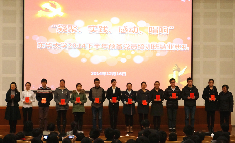 1216日,我校2014下半年预备党员培训班结业典礼在松江校区举行,来自12个学院的312名学员顺利结业。校党委副书记殷耀出席典礼并讲话。