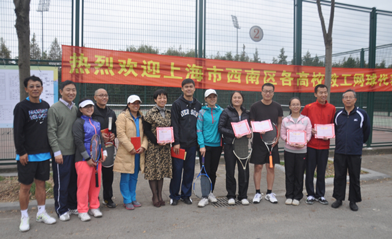 1115日,2014年上海市教育工会西南片区高校网球精英赛在我校松江校区举行,来自上海交通大学、华东政法大学、上海外国语大学等7所高校的近80名教工参加比赛。本次比赛组委会名誉主任、市教育工会副主席吉启华,市教育工会网球协会会长张杰出席开幕式。