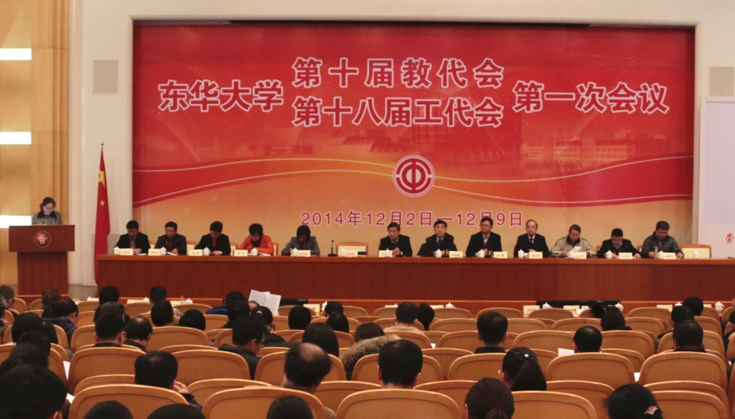 12月2日,我校第十届教代会暨第十八届工代会(以下简称“双代会”)第一次会议在松江校区开幕。会议的主要任务包括听取和审议学校行政工作、财务状况、工会工作等报告,选举学校第十八届工会委员会和经费审查委员会委员以及表彰2009-2014年度学校工会先进等。