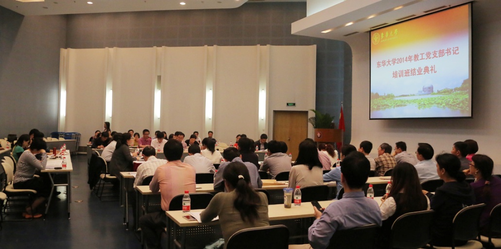 5月16日,我校2014年教工党支部书记培训班结业典礼在松江校区举行。党委书记朱民出席结业典礼并讲话,组织部部长、党校常务副校长崔运花主持,全体教工党支部书记与会。