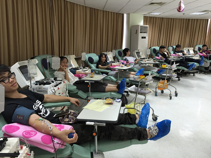 5月26日,我校管理学院24名同学在上海市血液中心参加“成分献血”活动,无偿捐献血小板。现场,每位同学根据现场医护人员的指示,有序地填表、体检、化验、等候、抽血。