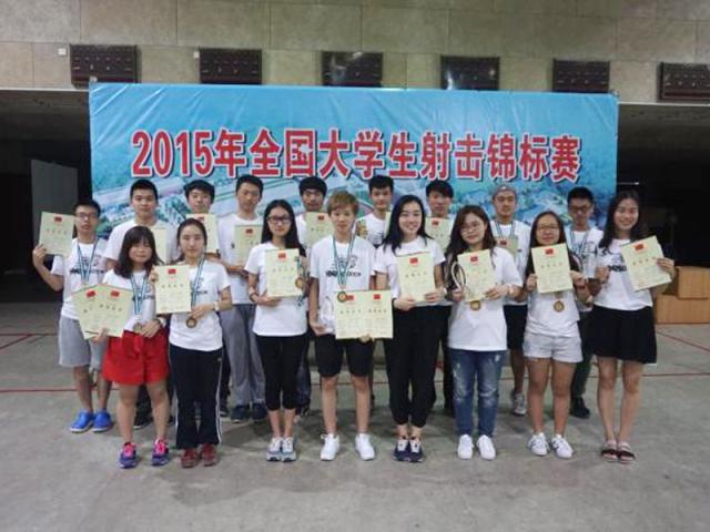 今年暑假,2015年全国大学生射击锦标赛在浙江省举行,本次比赛吸引了来自15所高校的150多名运动员参赛。我校射击队队员在激烈的竞争中脱颖而出,荣获男子气手枪个人冠军、团体冠军,女子气手枪个人亚军、团体季军,女子气步枪团体季军,并再次夺得团体总分第一。