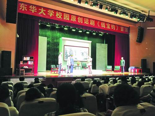 在表彰活动上,一出描绘我国化学纤维学科奠基人钱宝钧的校园原创大师剧赢得了台下师生的强烈共鸣,舞台上钱先生淡泊名利,求真务实,热爱事业,不懈工作一直到九十岁高龄的精神被逐一再现,这样的精神也让所有人深感敬佩。