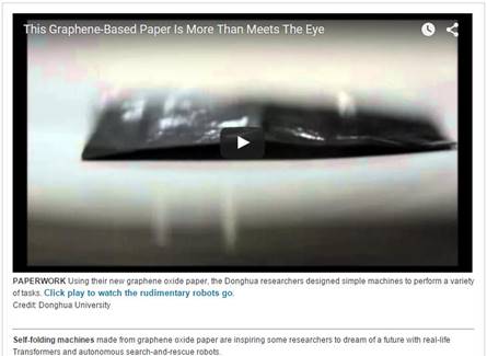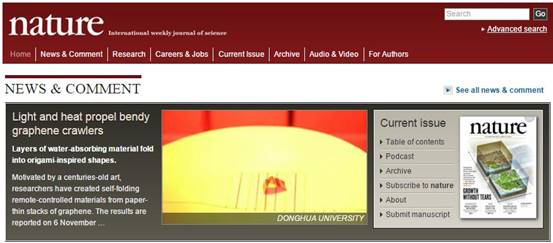 同日,国际两大权威学术杂志《Nature》、《Science》网站同时以文字及视频的形式报道了此项研究成果。哈佛大学(Harvard University)与康奈尔大学(Cornell University)相关领域学者对我校“石墨烯智能折纸”这一新成果及其应用前景给予高度评价。