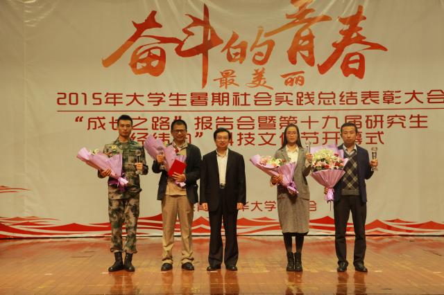 11月13日,我校2015年大学生暑期社会实践总结表彰大会、“成长之路”主题报告会暨第十九届研究生“经纬韵”科技文化节开幕式在松江校区锦绣会堂举行。副校长邱高出席会议并讲话,相关职能部处、学院负责人,暑期社会实践获奖师生代表及近千名学生参加活动。