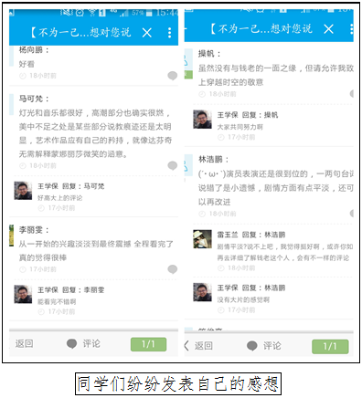 本次活动是一个贴近新生的活动,通过观看话剧以及线上评论让同学们体会校园文化,学习前辈的治学态度和为人修养。同时,该活动引导和帮助新生们自觉将社会主义核心价值观内化于心、外化于行,营造了积极向上的氛围,发挥了易班的育人实效。