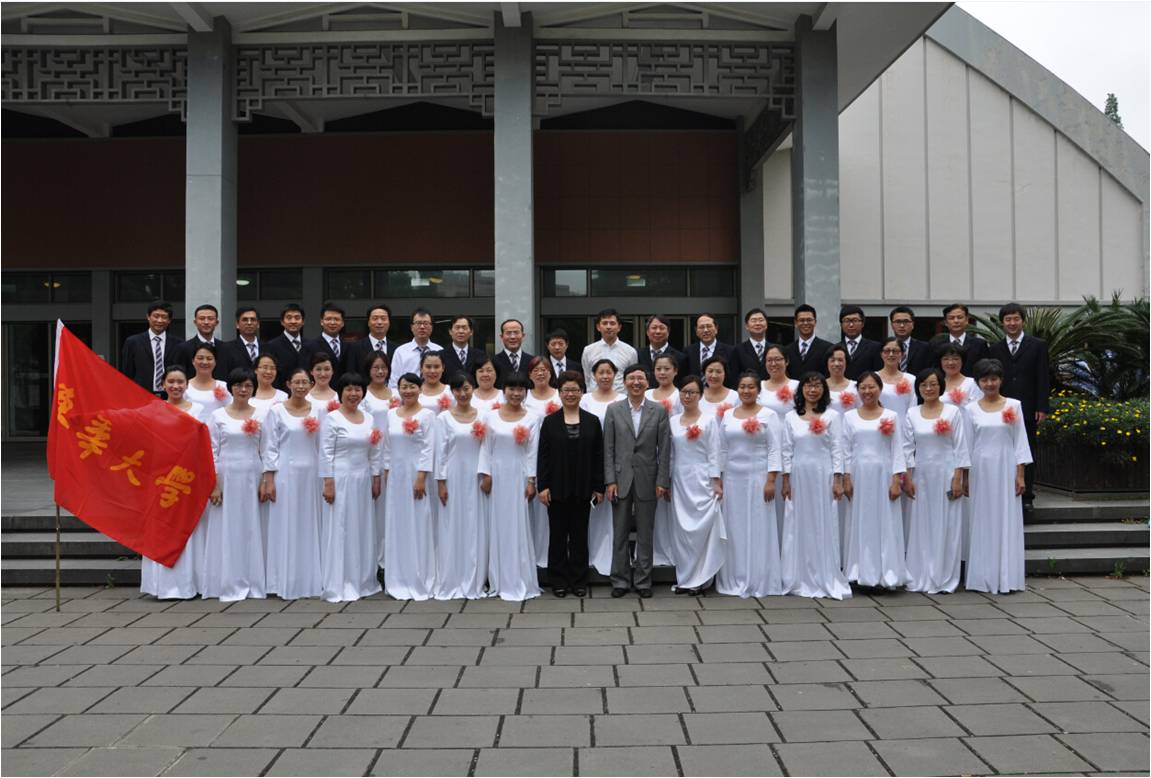 “纪念中国抗战胜利70周年”上海高校教工合唱主题展演5月29日在同济大学举行,我校由48名教师组成的合唱团参加了此次展演,校工会常务副主席郭萍应邀现场观摩。