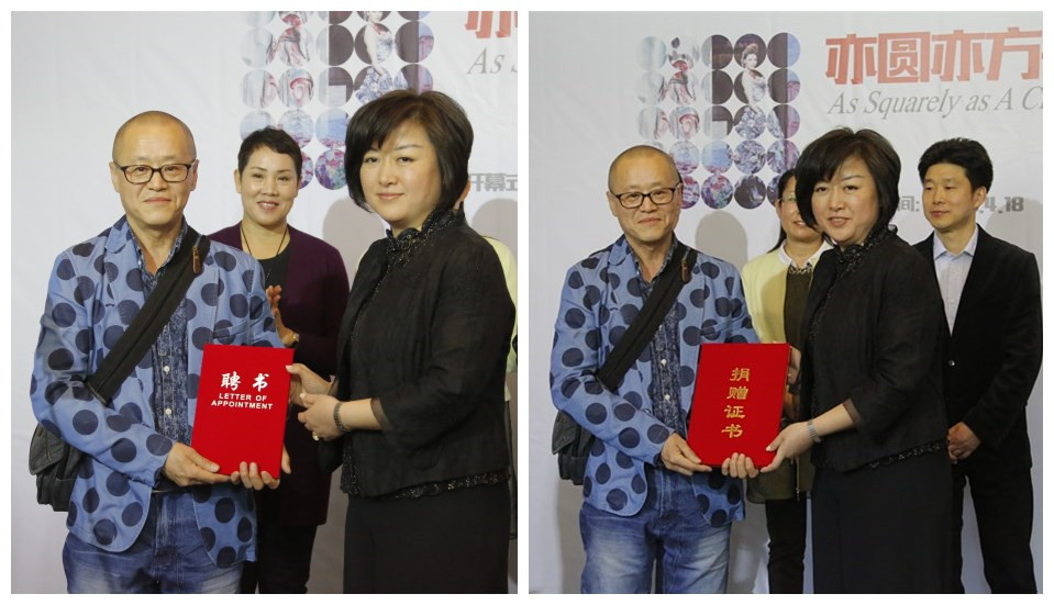 (刘春红为陈闻先生颁发聘书和捐赠证书)