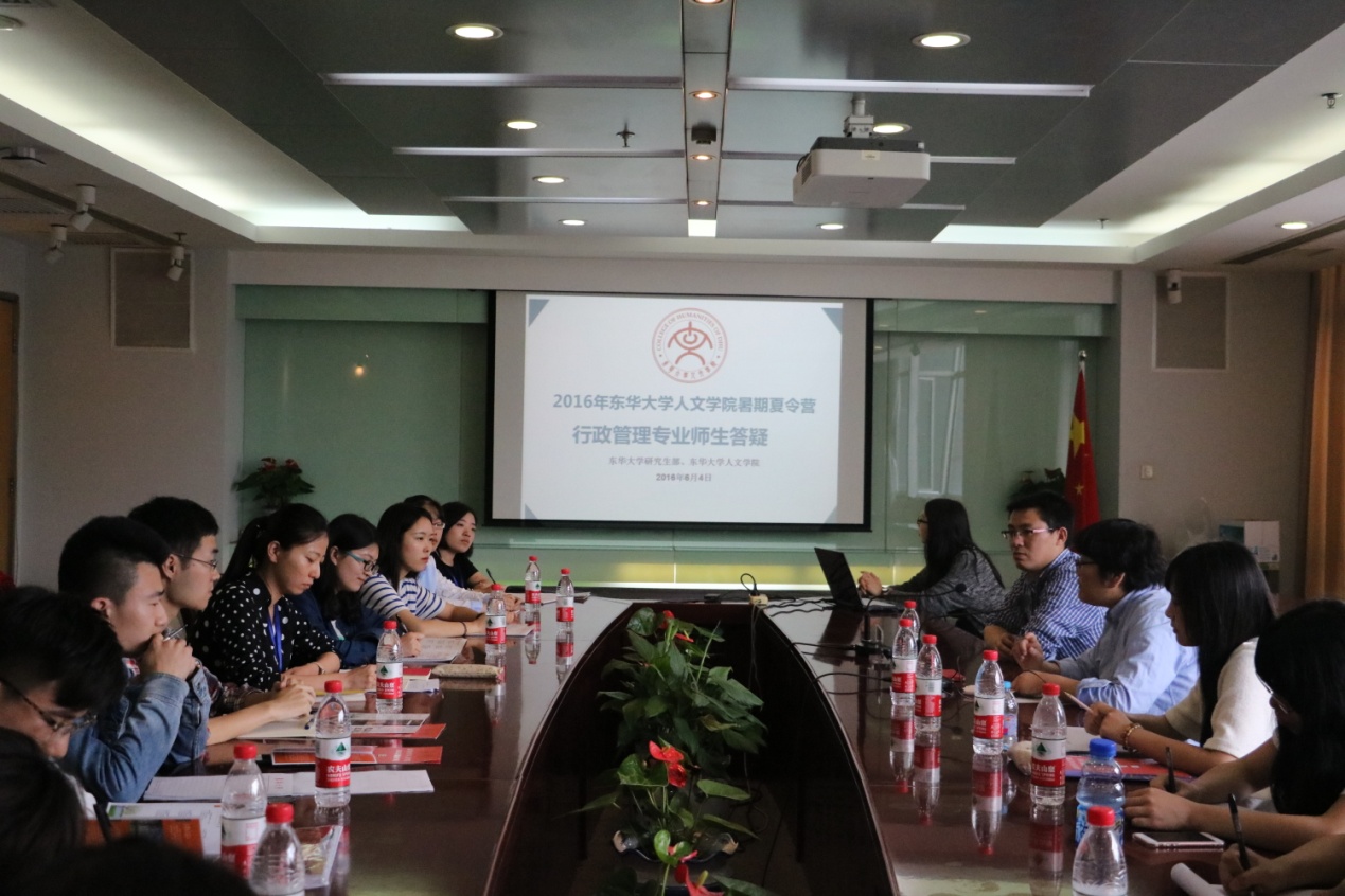在随后的校友交流会中,我院历届优秀毕业生从百忙之中回到母校,和营员们分享了他们的当初的考研、保研经验,并介绍了在校的科研、学习和工作等经历。营员们畅所欲言,学长学姐们知无不言。营员们纷纷表达了对人文学院研究生生活的向往,交流会在一片融洽和谐的氛围中结束。