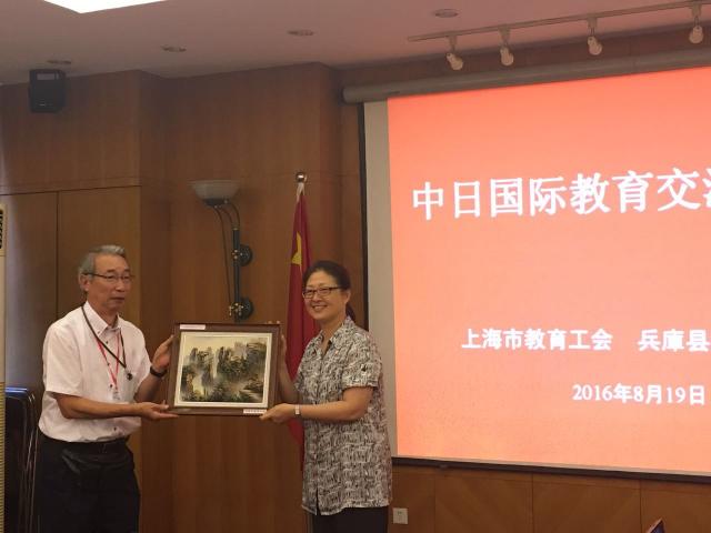 8月19日,中日国际教育交流研讨会在我校延安路召开。全国教科文卫体工会巡视员白立文,上海市教育工会常务副主席王向群、副主席吉启华,上海市教育委员会基础教育处处长朱蕾,全总、市总、市教育工会系统代表,以及以日本兵库县教职员工会执行委员长泉雄一郎为团长的日本兵库县教职员教育文化交流代表团48名成员与会。会议由吉启华主持。