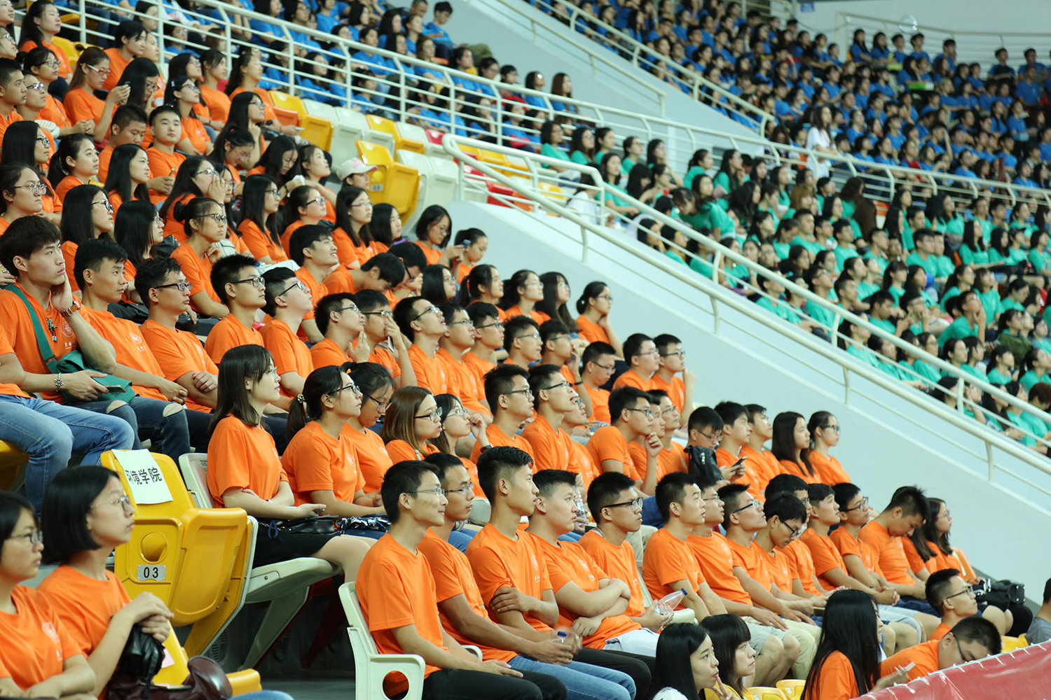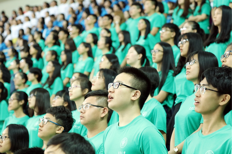 9月11日,我校举行2016级新生开学典礼,五千余名新生共聚松江大学城体育中心冰球馆,开启大学生涯新篇章。