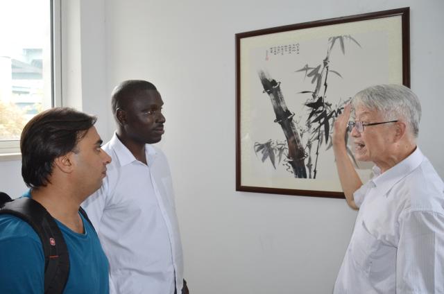 为了让留学生能在中国体验一个有意义的中秋节,由东华退休老师组成的霜叶书画社特地赶在中秋前为留学生创作了一幅幅中国传统字画,装点在宿舍的走廊中。文化活动中,平均年龄80岁的老教师们沿着宿舍走廊,耐心的为留学生们讲解着书画,让留他们更好的感受中国文化。茶话会上,来自塞内加尔的博士生苏拉用流利的中文表达了自己对中秋的理解,更是感谢老教师们为留学生送出的礼物,祝福老师身体健康。