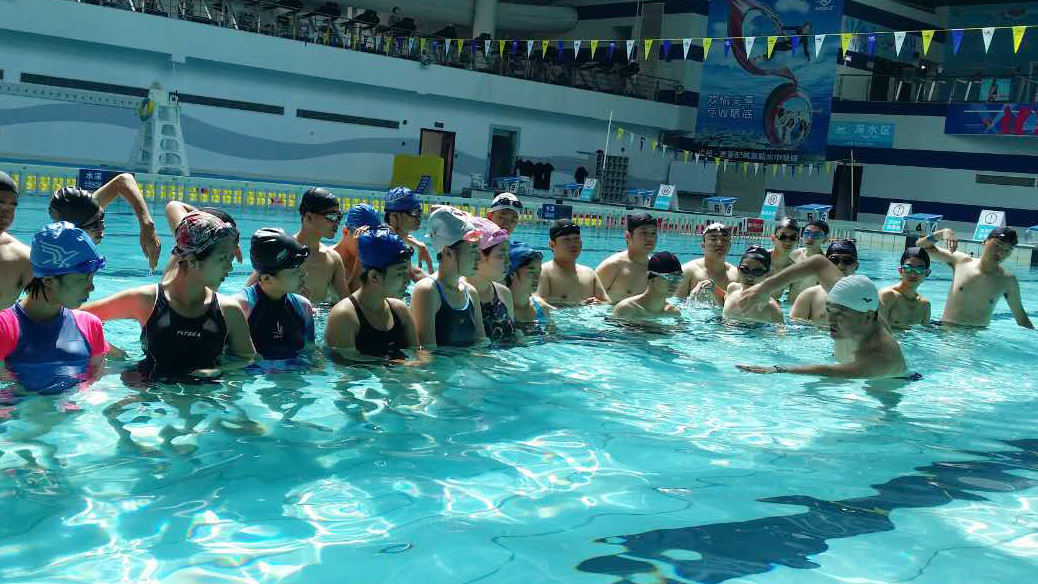(夏老师为学生演示急救流程)不仅是心肺复苏课,夏老师的游泳课也几乎期期爆满,授课时他妙语连珠,并常会带点手势,时刻吸引学生的注意力,让大家在轻松的氛围下更好得掌握游泳技能。他耐心地演示每一个细微动作,对于难度较大的部分,还会演示多遍,看到有同学在练习的过程中出现小错误时,他不厌其烦,一个个地纠正,并在细节处予以指导,让每一个同学都能尽快掌握技巧,到了期末,大家游泳技能有了突飞猛进的进步。正因为夏老师授课认真、讲解风趣,游泳课也成了学生自选体育课程中的“抢手货”。
