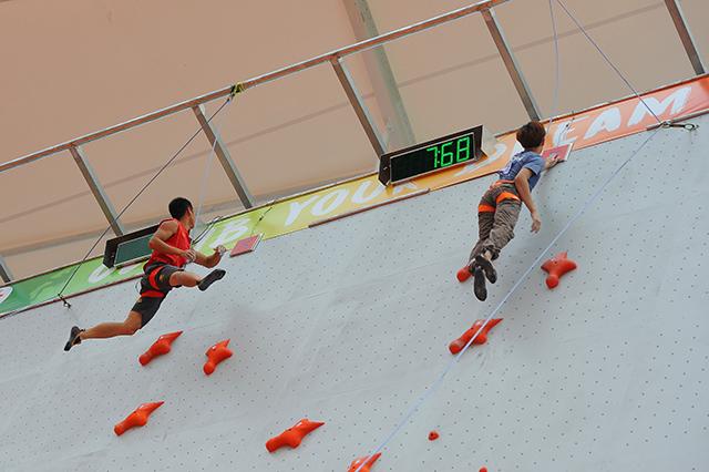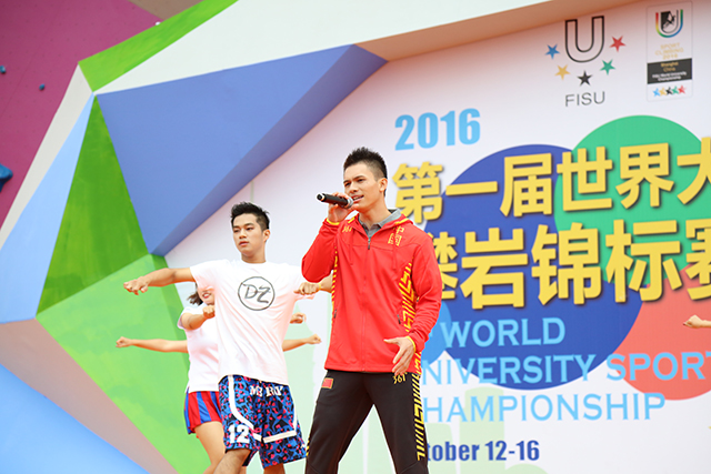 (中国国家攀岩队队长、世界攀岩锦标赛冠军钟齐鑫参加开幕表演)