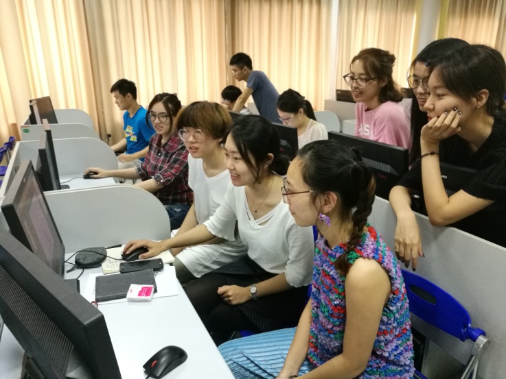(马颜雪老师(前排右二)辅导学生CAD设计)