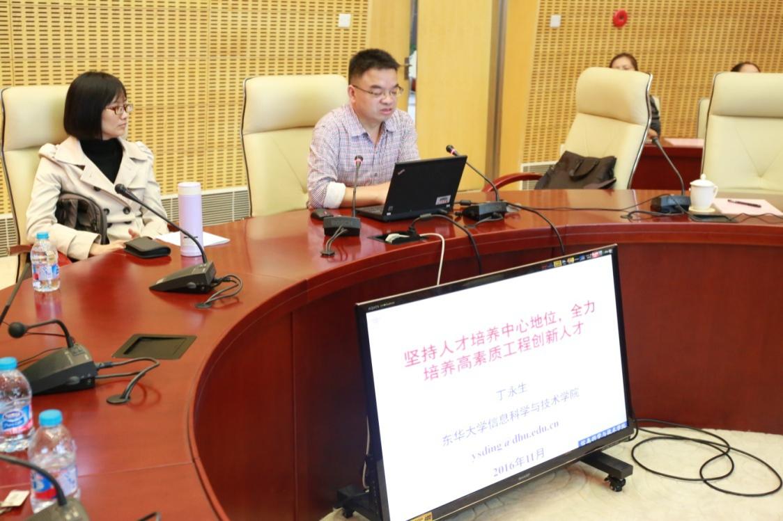 (丁永生院长(右)做题为“坚持人才培养中心定位,全力培养高素质工程创新人才”的报告)