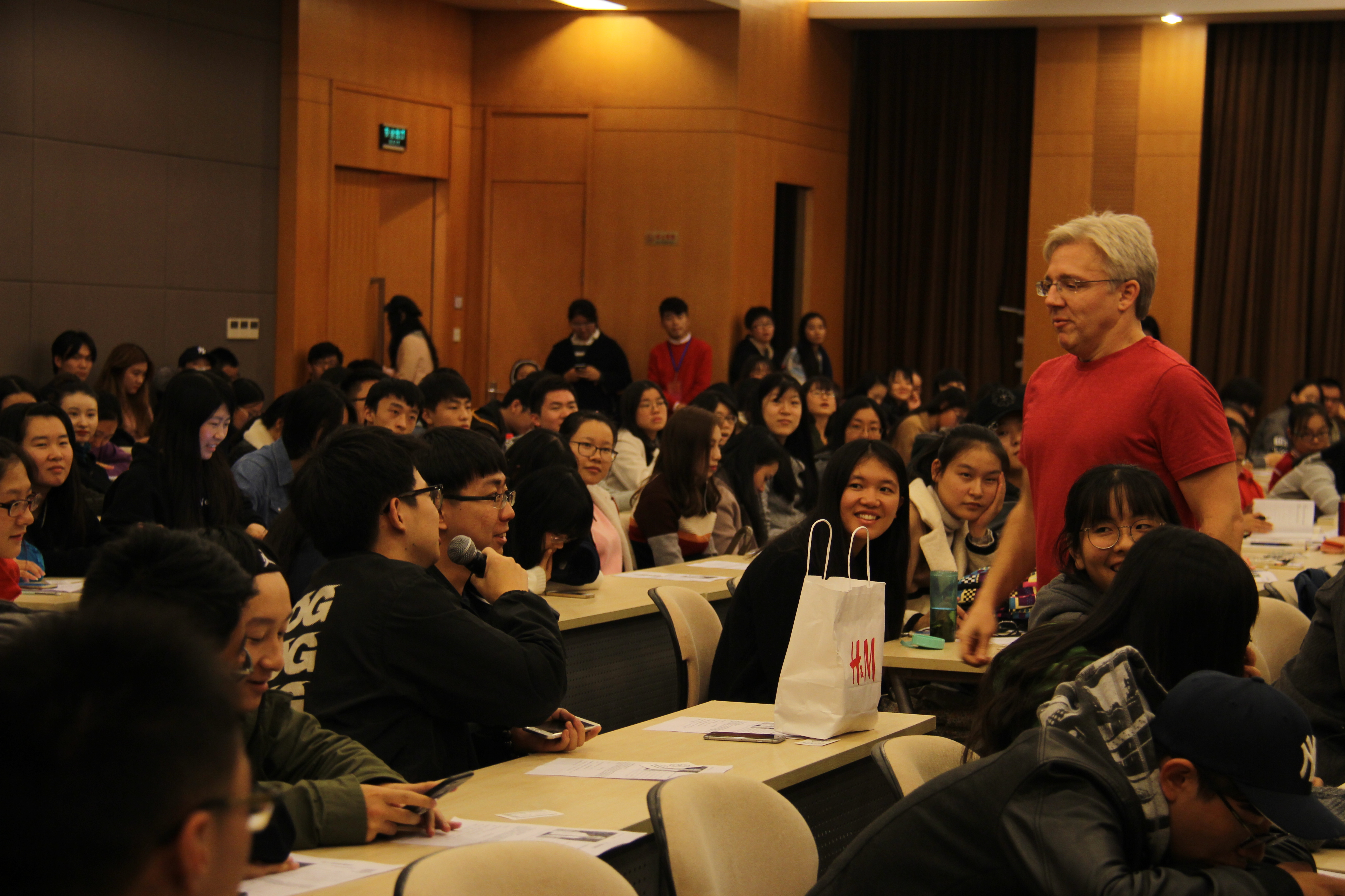 (嘉宾在博实大讲堂讲述中美跨文化交流经历