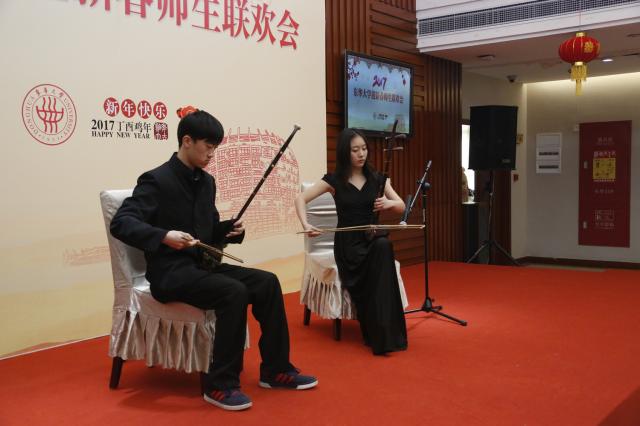 金猴辞旧岁,锦鸡啼新春。1月22日农历腊月二十五,我校延安路校区东华食府张灯结彩,喜气洋洋。校党委书记朱民、校长蒋昌俊、校党委副书记刘淑慧、副校长卿凤翎与400多名留校同学一起欢度新年。各机关部处、院系负责人及辅导员代表一同参加联欢。