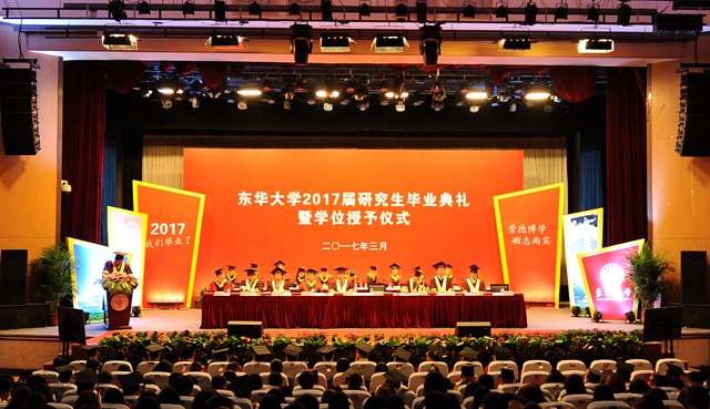 3月22日,我校2017届研究生毕业典礼暨学位授予仪式先后在松江和延安路校区举行,163名博士、987名硕士依依惜别母校,扬帆起航。校党委书记朱民,校长、校学位评定委员会主任蒋昌俊,中国工程院院士俞建勇,校党委副书记崔运花,党委副书记、纪委书记金海燕,副校长刘春红、邱高、李永智、卿凤翎、陈革出席毕业典礼。典礼由邱高主持,各院系领导、导师代表、全体毕业生和家长代表一起见证这一难忘时刻。