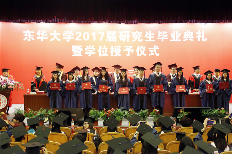 3月22日,我校2017届研究生毕业典礼暨学位授予仪式先后在松江和延安路校区举行,163名博士、987名硕士依依惜别母校,扬帆起航。校党委书记朱民,校长、校学位评定委员会主任蒋昌俊,中国工程院院士俞建勇,校党委副书记崔运花,党委副书记、纪委书记金海燕,副校长刘春红、邱高、李永智、卿凤翎、陈革出席毕业典礼。典礼由邱高主持,各院系领导、导师代表、全体毕业生和家长代表一起见证这一难忘时刻。