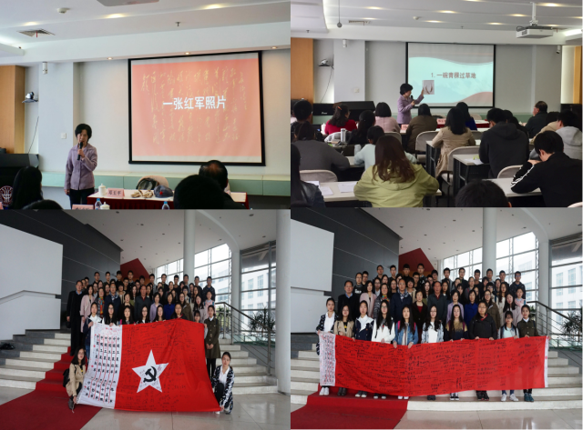 邓老师向同学们展示了一面签满了红军老战士们名字的旗帜,生动的讲解让同学们认识到长征不仅仅是知识,而是实实在在的存在,长征路是一座红军战士用青春热血铸就的露天的历史博物馆。“长征精神,心中永存”,在永恒的精神中感受到了党的力量,激励着每个学员不忘初心、砥砺前行,认真学习党章党史,在今后的学习生活中,积极向党组织靠拢,为建设国家贡献自己的力量。