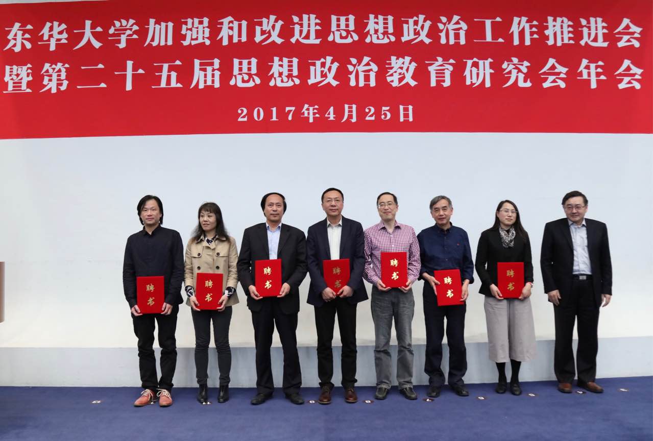 蒋昌俊、朱民先后为首批“课程思政”建设专家代表颁发聘书。据悉,组建“课程思政”建设专家团队是学校启动“课程思政”教育教学改革专项计划的重要内容,旨在推进全员全过程全方位育人,把思想引导和价值观塑造融入每一门课程教学之中,校党委书记朱民,校长蒋昌俊,校党委副书记刘淑慧,中国工程院院士、校纺织科技创新中心主任俞建勇,纺织学院院长陈南梁,马克思主义学院直属支部书记、院长王治东,上海纺织服饰博物馆馆长卞向阳,纺织学院教授邱夷平、郁崇文,材料科学与工程学院教授王依民,旭日工商管理学院教授高长春,服装与艺术设计学院教授刘瑜、副教授周洪雷等13位同志承担了《锦绣中国》课程思政建设任务,受聘为我校“课程思政”建设首批专家。