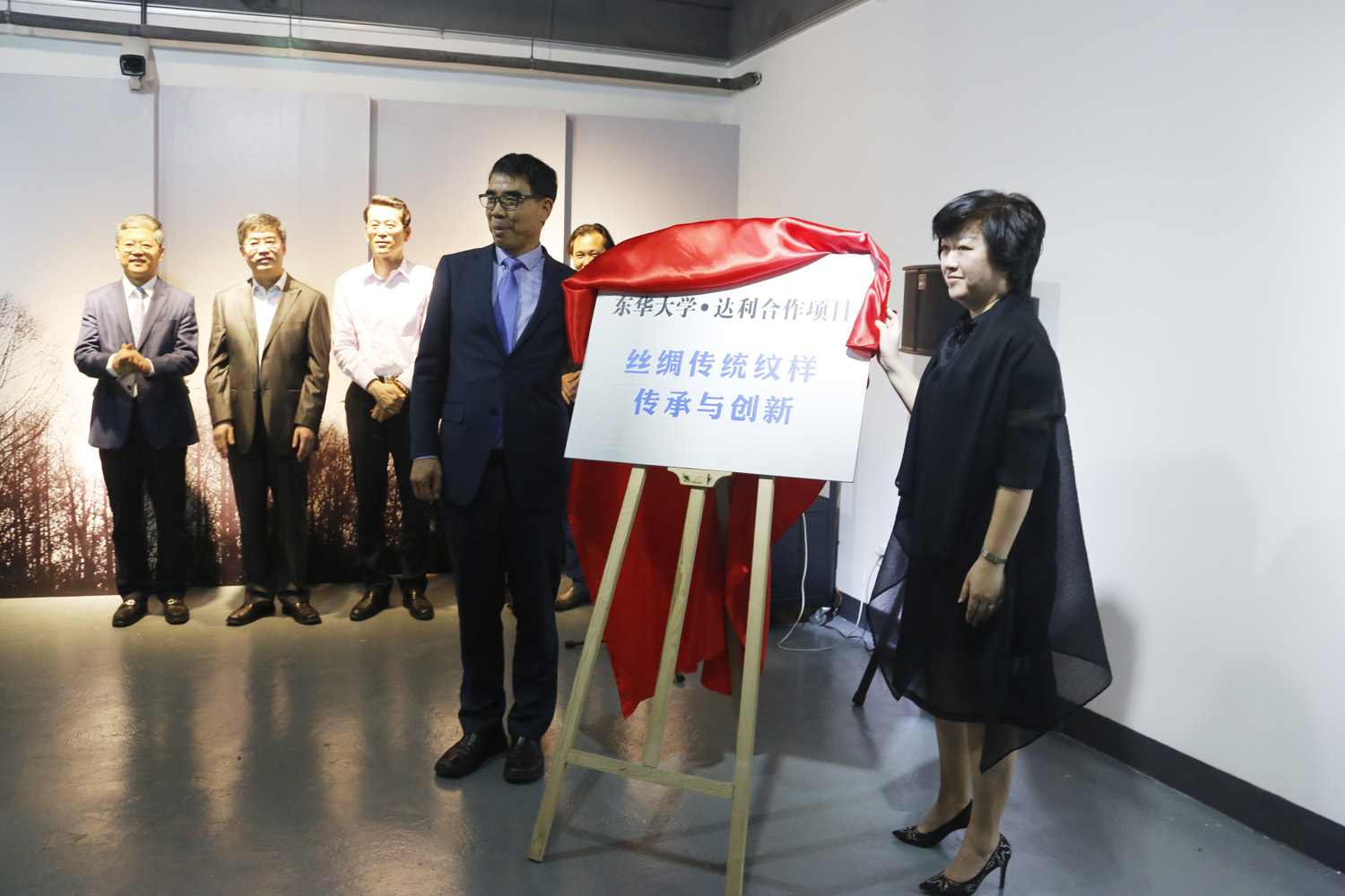 开幕式上,刘春红副校长为林平先生颁发“上海纺织服饰博物馆捐赠证书”,双方共同为“丝绸传统纹样传承与创新项目”揭幕。夏令敏、林平为专家颁发“达利丝绸(浙江)有限公司省级重点企业设计院专家证书”。展览现场,林平向上海纺织服饰博物馆捐赠了近代丝织机及APEC面料。