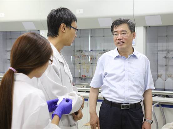 在材料科学与工程学院、化学化工与生物工程学院等单位,朱民一行深入实验室和教授办公室,与院士、学科带头人、青年学者、研究生和留学生等亲切交流,听取师生们对学校工作的意见建议,对师生们工作学习取得的新进展新成绩感到由衷欣慰,并为师生们只争朝夕的充足劲头加油鼓劲。朱民指出,东华师生把学习工作视为生活的一部分,变成人生的一种习惯,这种良好的教风学风正是“创新、实干、包容、大气”学校文化的生动体现,需要继续传承和发扬。他叮嘱师生们劳逸结合、注意休息,同时要求有关职能部门多从师生学习生活和教学科研的实际需求出发,竭力做好假期各项后勤服务和保障工作。