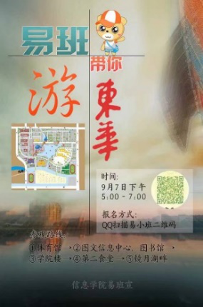 为了让新生更好地体验校园生活,各学院易班也以多种方式,帮助新生了解在东华的衣、食、住、行、学,切实帮助大学生顺利完成适应过渡期,开启崭新的大学生活。服装学院遴选优秀学生骨干组建班导生线上答疑团,机械学院发布开学暖心贴士,外语学院发起“易言易语聊大学”活动,理学院发布“易起玩转大学”系列服务贴,信息学院则用时下最流行的视频直播方式,带新生提前感受东华校园和大学城周边,累计观看人数超6000人。