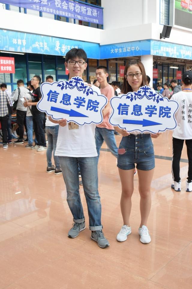 据悉,信息学院为了帮助新生更快融入学院大家庭,今年创新迎新工作方式。在校区和宿舍区主要路口安排志愿者手持指路牌,为新生指明新生报到和信息学院新生宿舍楼所在位置,让新生和家长们刚进东华就能直观感受到满满的信息元素;志愿者拿着东华信息人朋友圈kt板在锦绣会堂或者学院楼门口可供新生和家长们合影留念,强化新生作为东华人信息人的身份感,帮助新生早日树立东华人信息人的主人公意识;在每一间新生宿舍门上已经贴上信息人的专属门贴,给他们家的温馨,并且门贴上除了新生姓名和生源地还有学院易班和微信二维码,帮助新生通过网络更快地了解学院资讯,更好地融入大学生活。