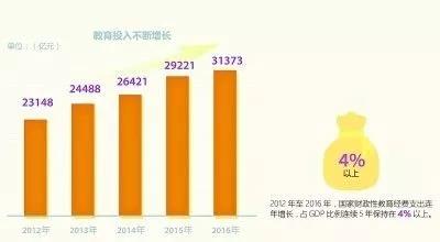 一连串坚实有力的“数字”,为中国教育改革注入十足底气:2016年国家财政性教育经费首破3万亿元,比上年再增7.36%。2016年,进一步明确“一个不低于、两个只增不减”要求:保证国家财政性教育经费支出占国内生产总值的比例一般不低于4%,确保财政一般公共预算教育支出逐年只增不减,确保按在校学生人数平均的一般公共预算教育支出逐年只增不减。