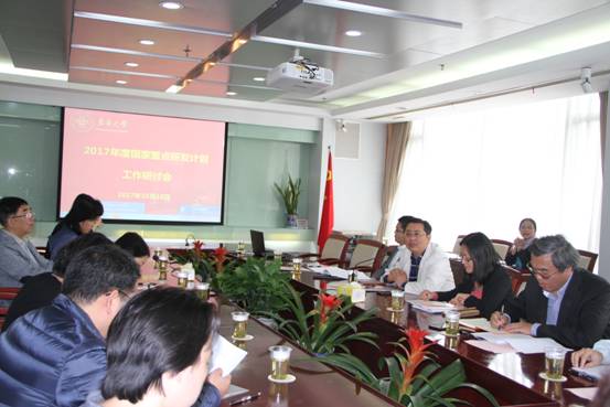 科研处副处长甘学辉首先介绍了近两年我校国家重点研发计划申报、立项情况和今年8月底我校作为项目牵头单位代表在科技部高技术中心召开的管理工作会议上介绍项目管理经验的情况,传达了科技部高技术中心的十条要求,并做了解读。加强项目组织实施管理,认真履行承担单位法人责任,加强预算管理,做好年度汇报、中期技术交流等环节,强调整个项目是“全链条设计”的,必须要“一体化实施”。并对2017年度获得立项的项目启动会做了说明、讲解,提出了要求。