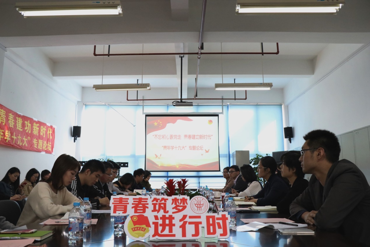 10月24日上午,中国共产党第十九次全国代表大会在人民大会堂胜利闭幕。当天下午,我校团委在第一时间组织举办“不忘初心跟党走,青春建功新时代”——“青年学十九大”专题论坛活动。校院专兼职团干部、青年教师、各级学生组织代表参加活动,用青年人的话语述说党的十九大盛况,用青年人的方式为党的十九大点赞,共同聚力新征程、展望新时代。