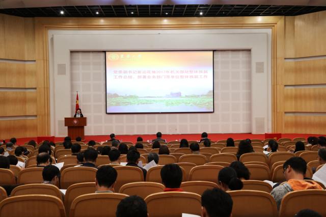 校党委副书记崔运花在会上做了2017年机关部处整体换届工作总结。崔运花指出,本次机关换届,经历了换届方案的制定;属于整体换届范围部门的梳理和确定、换届部门主要职能的确定;各部门干部职数的确定及处级干部岗位职责的确定;召开启动大会和工作推进会,分步进行在岗正、副处级干部测评、干部岗位人选公开、民主推荐、应聘;应聘提任人员的面试推荐;干部人选提名;拟提任干部人选“四凡四必”核查、考察等,在此基础上,校党委常委会讨论决定干部人选,并进行任前公示和正式任命。通过严格的程序、严肃的纪律,确保整个换届过程公开透明、紧凑有序、稳步推进。截至目前,基本完成机关整体换届工作,通过换届,调整、充实了机关干部,实现了干部轮岗交流,干部的年龄结构等有所改善,一批年轻干部脱颖而出,初步达到了换届的预期目标。通过此次机关换届工作,有力推进了学校整体干部和班子任期制及任期目标责任制的进程。
