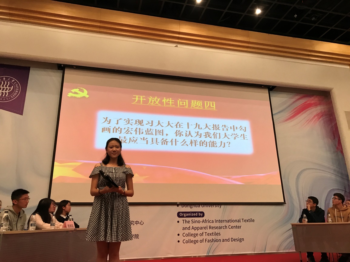 近日,纺织学院“不忘初心跟党走,青春建功新时代”学习十九大精神主题知识竞赛在松江校区举行。六支学生队伍从初赛、预赛中脱颖而出入围决赛,以知识竞赛的形式学习、弘扬十九大精神。学院党委、分团委有关负责人,以及专职党务干部、辅导员代表及本科生入党积极分子、党员参加活动。