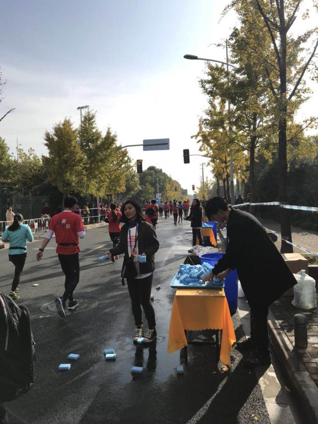 7点30分马拉松赛正式开始,志愿者们积极主动地为需要饮水和降温的参赛选手递上水和海绵,也不忘热情洋溢地为参赛选手加油打气。现场观赛的路人不禁被志愿者高昂的热情所打动,纷纷竖起大拇指称赞。