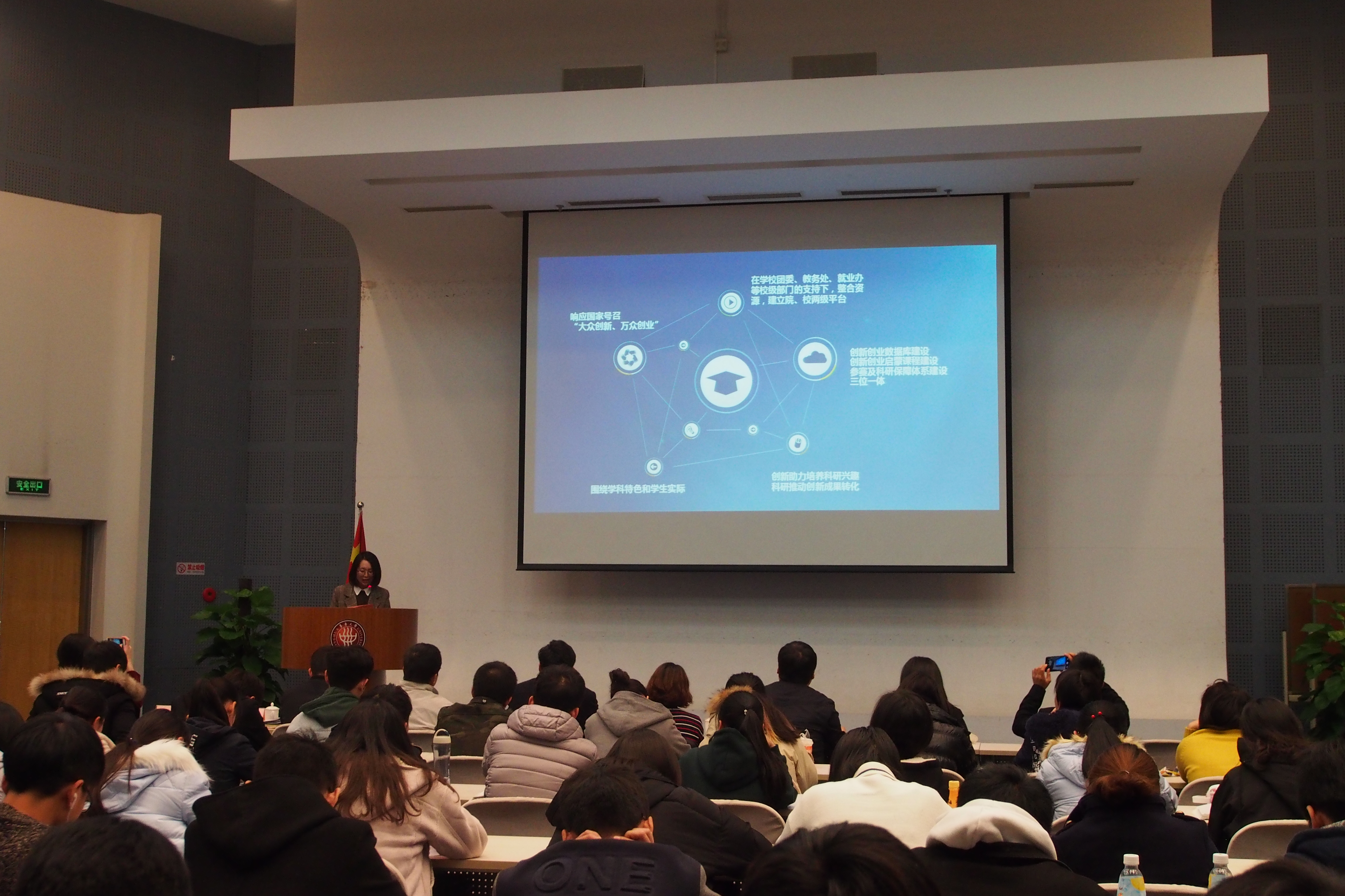 第十八届化学节以“智汇化生,科创未来”为主题,着重培养学生专业兴趣与科研创新能力,化生零距离、科创梦工厂、化学嘉年华、能力提升坊四大板块针对不同层次、不同年级的同学开展针对性的活动。化工生物学院积极响应“大众创业、万众创新”的号召,结合学院学科特色和学生实际,成立了化工生物学院大学生创新创业成长营。在开营仪式上,纪静从“启蒙培育,人才储备,定点输出,营造氛围”四个方面介绍了创新创业成长营的建设规划。受到刘延东副总理接见的15级硕士研究生杨慧琴为同学们带来了创新创业成果展示,并以《以梦为马,趁诗酒年华》的经验分享。她以“独木不成林,单燕亦非春”、“纸上得来终觉浅,绝知此事要躬行”、 “暖日和风香不尽,伸枝展叶碧无穷”为主题分享了积极思考、善于合作、勤学笃实的个人经验。