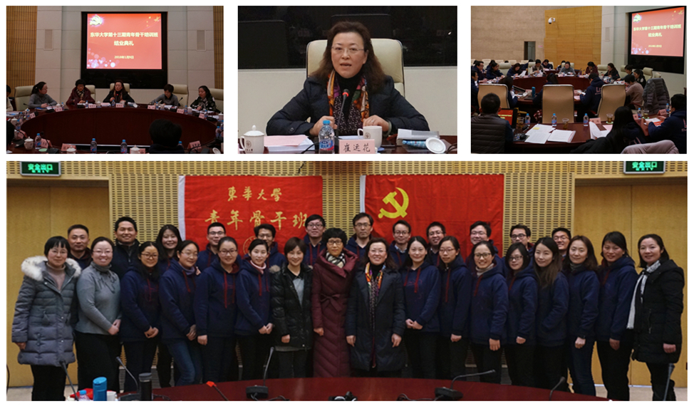 培训班班长、信息科学与技术学院刘华山老师会上作培训班总结。本期培训班共设“理论学习与党性修养”、“高等教育与学校发展”、“成长成才与素质能力”和“革命传统与理想信念”四个篇章,在每一篇章结束时组织学员论坛开展交流研讨。在“高等教育与学校发展”篇章中,校党委书记朱民、党委副书记刘淑慧、副校长刘春红、邱高、卿凤翎,围绕青年教师成长、思想政治工作、时尚产业、人才培养质量、人才队伍建设等方面作专题辅导;在“理论学习与党性修养”与“成长成才与素质能力”篇章,上海市委党校黄力之、松江区委党校副校长陈超、市委党校陈方刘、华东师范大学曹景文、我校人文学院廖大伟等专家围绕马克思主义基本问题、国内外政局形势、传统文化、习近平统战思想、上海城市发展等专题做了深入浅出的讲解,还组织学员开展赴中共一大会址现场教学、“老干部工作和青年成长”座谈交流等活动;在“革命传统与理想教育”篇章,全体学员赴井冈山接受井冈山精神洗礼,了解党史国情,加强革命传统和理想信念教育。本期培训班还组织了专题调研,让青年骨干深入思考学校在改革发展中面临的问题、解决途径,增强改革创新意识,提高推动学校发展的能力。
