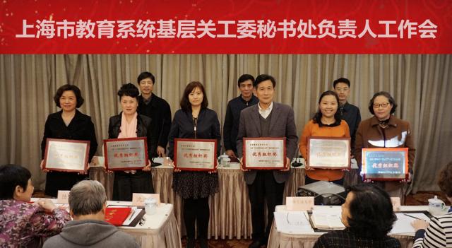 上海市教育系统基层关工委秘书处负责人工作会日前召开,我校关工委获评上海高校特邀党建组织员先进工作团队,并获“以中国梦激荡青春梦”微视频制作活动优秀组织奖,我校丁霞萍老师荣获上海高校优秀特邀党建组织员,人文学院关工委课题组研究项目《“互联网+”时代高校关工委新工作模式探究》荣获2017年上海市教育系统关心下一代工作课题研究特等奖。
