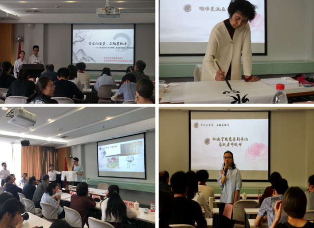 李谷娜系解放军艺术学院美术系副教授、中国画家协会理事、世界华人艺术家学会理事,画作曾获“庆香港回归书画作品展优秀奖”、“美国世界艺术中心第三届企鹅奖书画大赛银奖”等各大国际及国家级奖项,在各地均有展出。李谷娜为现场书画爱好者、老师和学生带来了细致生动的教学讲解,从绘画思想、绘画理念、绘画态度和绘画目标四个方面讲述了书画学习中的精神要领。学生张诗雯与李晓诠现场展示自己的绘画作品与书法作品,并向大家讲解画作灵感,李谷娜对两位同学的作品逐一点评并给出指导建议。李老师为大家讲解“墨分五色”,现场教授绘画牡丹、芍药、竹枝竹叶,师生们纷纷拿起毛笔在宣纸上跟随老师的讲解落笔辗转。李老师现场赠予题词“水墨丹青万古春”,并希望大家通过中国绘画学习古人精神,创造新时代的新作品!
