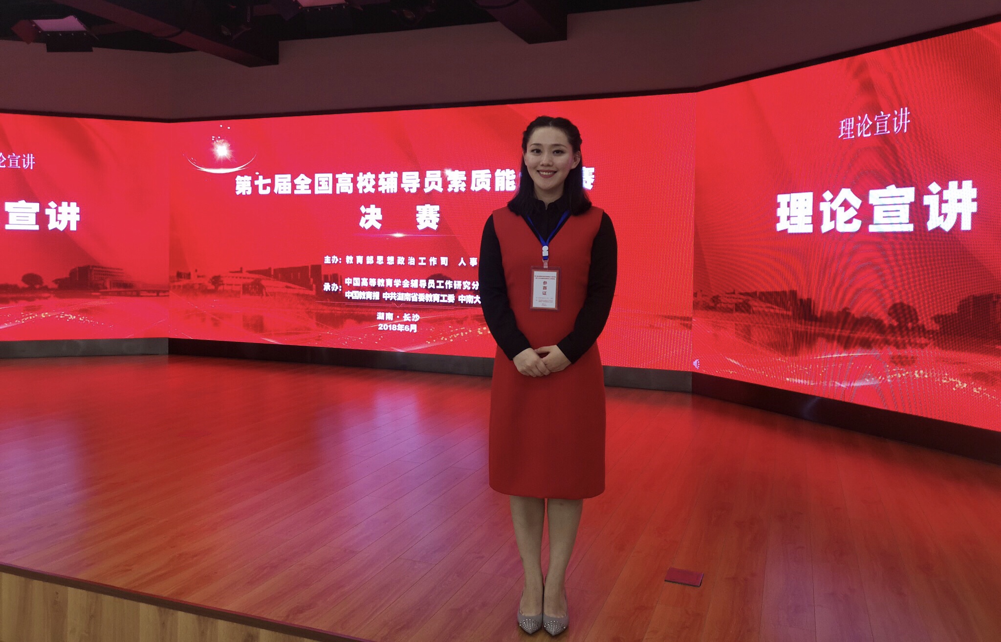 6月23—24日,第七届全国高校辅导员素质能力大赛决赛在中南大学举行,我校纺织学院辅导员魏金婷以优异的成绩荣获二等奖。本次决赛竞争异常激烈,汇聚了来自全国各高校的78名优秀选手。该赛事是全国高校辅导员系统最高层次的素质能力竞赛平台,是对辅导员理论水平和实践能力的全面检验。比赛设有两个阶段,第一阶段为笔试,包括基础知识测试和网文写作、案例分析;第二阶段包括谈心谈话、理论宣讲。两个阶段既有对辅导员相关知识掌握程度、运用相关学科知识和方法开展大学生思想政治教育、解决实际问题的技巧与能力的测试,也有对马克思主义理论、习近平新时代中国特色社会主义思想的理解、宣传与阐释能力的考察。
