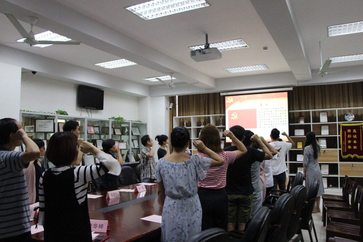 座谈会上,第一校外实习基地学生党支部书记窦路路结合自己担任支部书记的经历,回顾了研究生阶段的思想成长和学习收获。平行专业毕业班学生党支部宣传委员王宇结合大学期间“云梦盐津”公益扶贫项目的经历,讲述了自己在思想上的蜕变,并努力学习成功考研进入复旦大学深造。随后,在卓越专业毕业班学生党支部孙琳的带领下,全体师生党员面向党旗重温入党誓词。