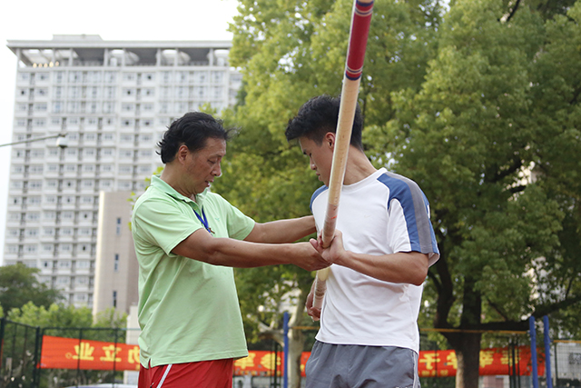 管理学院2016级学生昂康是我校撑杆跳高现役队员,原本是以三级跳远项目考进我校,开始只是跟着袁老师进行体能训练,偶然间尝试了撑杆跳高觉得很有兴趣,于是在大一第二学期正式改练撑杆跳高。作为一名“半路出家”的选手,他的训练比起从小受训的运动员更有难度。昂康告诉记者,因为三级跳远和撑杆跳高项目在装备、器械上都有不同,刚开始的训练并不顺利,袁老师针对他的情况调整训练计划,不断鼓励他,经过一年多的坚持训练,昂康的进步非常明显,今年暑假他将代表学校征战全国大学生田径锦标赛赛场。不只是昂康,在袁老师的带领下,我校多名撑杆跳高运动员活跃在各类专业田径赛事的赛场,2016级研究生姚捷更是身披国家队战袍出征里约奥运会。