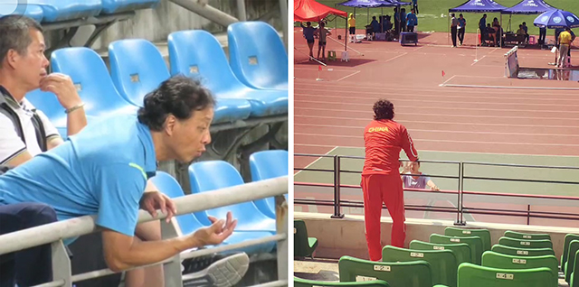赛场上袁老师指导运动员“体育的代名词就是坚持”
