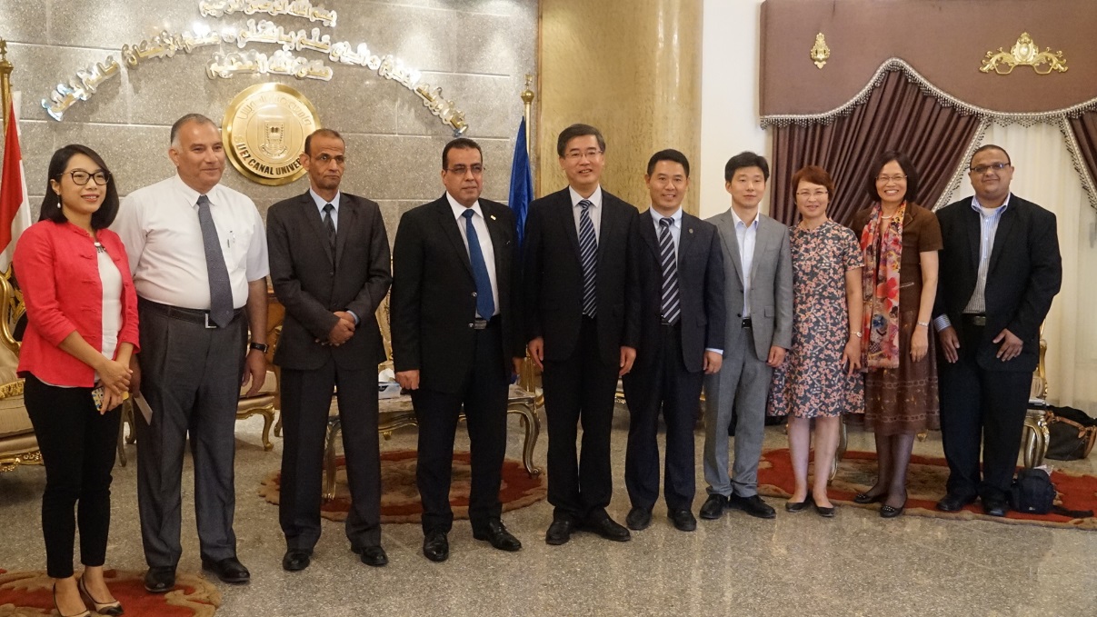 9月21~22日,朱民率团赴埃及访问埃及苏伊士运河大学,就进一步落实两校在现有合作基础上的人才培养和学科合作与阿特夫·阿伯诺尔校长进行深入研讨,进一步扩展我校服装设计领域、材料科学与工程在埃及乃至非洲的合作点和合作内容。