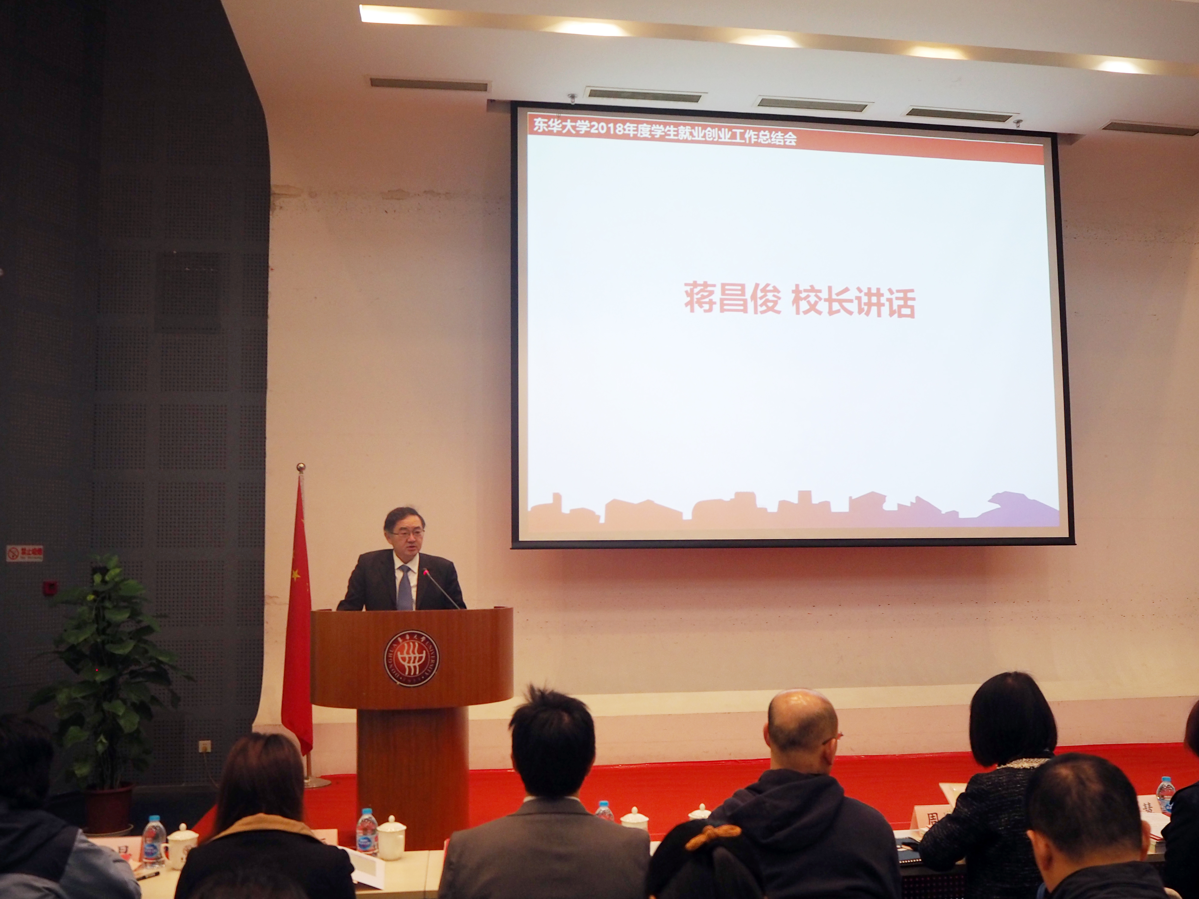蒋昌俊对学校一年来学生就业创业工作所取得的成绩表示肯定,并向参与就业创业工作的集体和个人表示感谢。他表示,就业不仅是民生,也是国计,就业创业质量更是学校人才培养质量的重要体现。根据国家战略发展和行业产业发展需求,学校持续深化教育教学改革,不断创新人才培养模式,以提升质量为导向,构建分层分类的本科生、研究生培养体系。今年,学校就业创业工作也获得了不少荣誉,如获评2017-2018年上海市高校毕业生就业创业工作专项督查优秀单位,入选2018年度50所全国创新创业典型经验高校等,学校就业创业工作需在继承优良传统的基础上,更加注重内涵建设,积极营造校园创新环境和创新氛围,并推荐更多的优秀毕业生到祖国的重点地区、重要单位、重要岗位就业。蒋昌俊强调,各学院、职能部门要认真落实“一把手工程”,努力形成就业、招生、培养的联动机制;要善于全局谋划,更要抢抓机遇,引导毕业生到先进制造业、现代服务业等领域就业、创业;要加强就业创业工作的信息化建设,提高就业服务的精准化水平;要完善机制,加强对各类群体的帮扶,切实增强学生择业的满意度和幸福感。接下来,学校将进一步贯彻落实全国教育大会精神,落实立德树人根本任务,共同推动学校整体办学水平实现新的跨越发展。