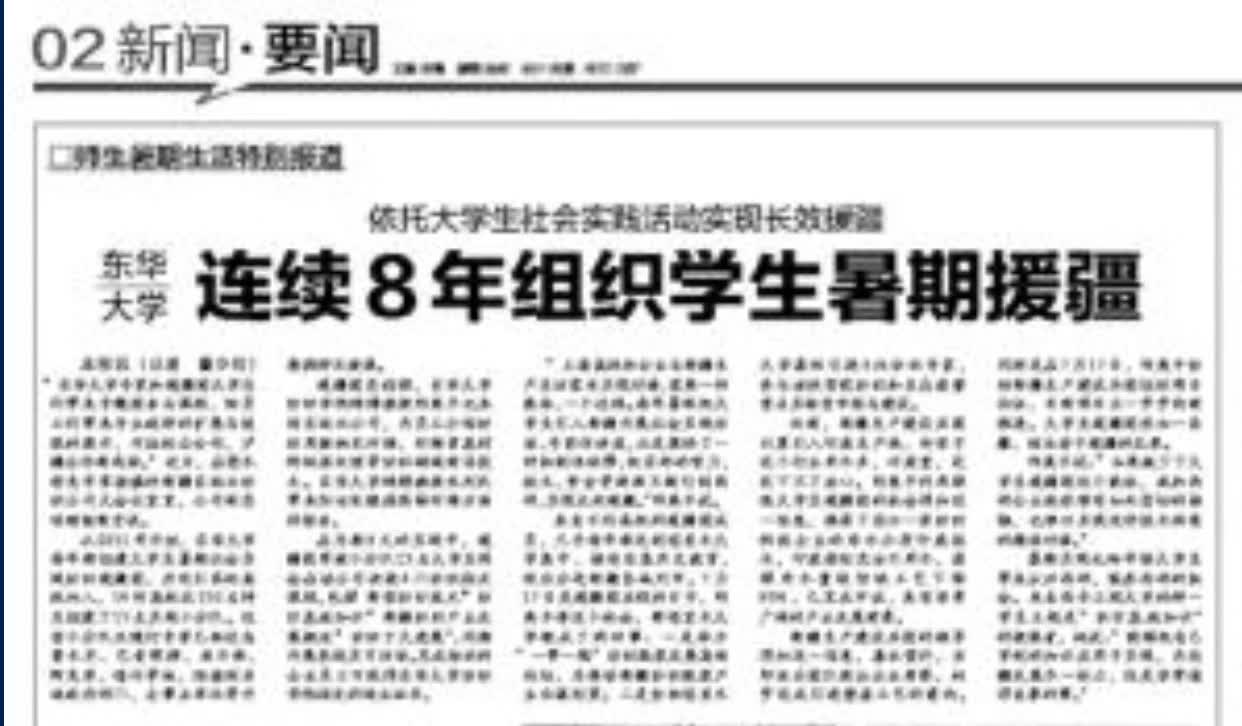 “上海高校和企业与新疆生产生活需求实现对接,需要一种载体、一个过程。每年暑假把大学生引入新疆开展社会实践活动、专家作讲座,正是提供了一种机制性保障,把东部的智力、技术、资金等源源不断引到西部,实现长效援疆。”邱夷平说。