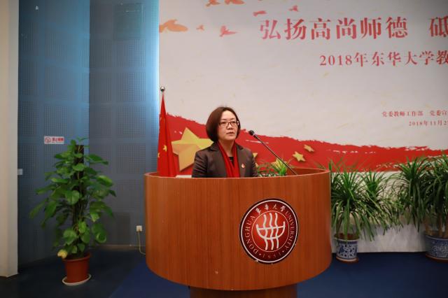 党委副书记、校工会主席刘淑慧出席活动并致辞。她指出,教师是人类灵魂的工程师,是人类文明的传承者,希望广大教师弘扬高尚师德和知识分子爱国奋斗精神,全心全意做学生锤炼品格、学习知识、创新思维、奉献祖国的引路人,成为先进思想文化的传播者、党执政的坚定支持者、学生健康成长的指导者,争做“四有”好老师。
