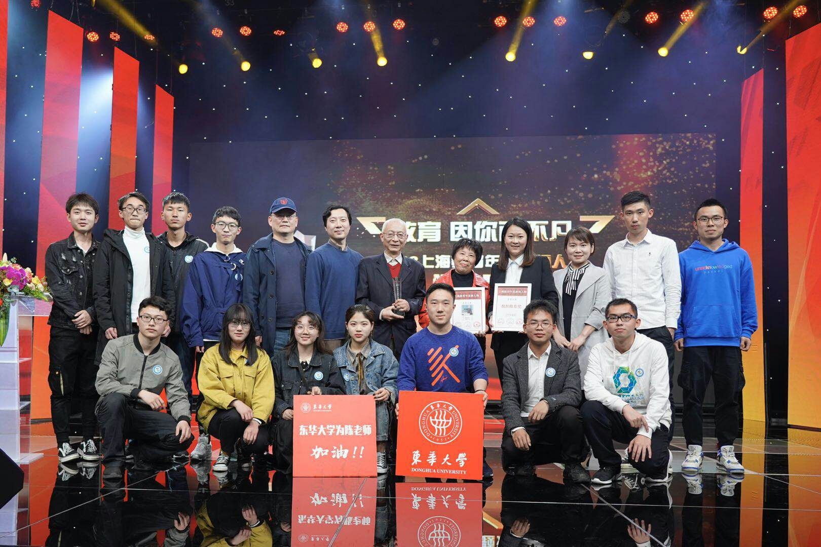 (陈老师与参加颁奖典礼的东华师生合影留念)